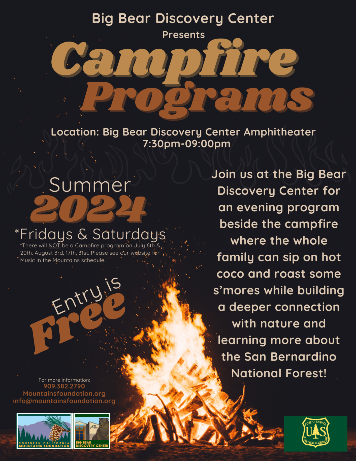 Join the Southern California Mountains Foundation at the Big Bear Discovery Center for an evening program beside the campfire!